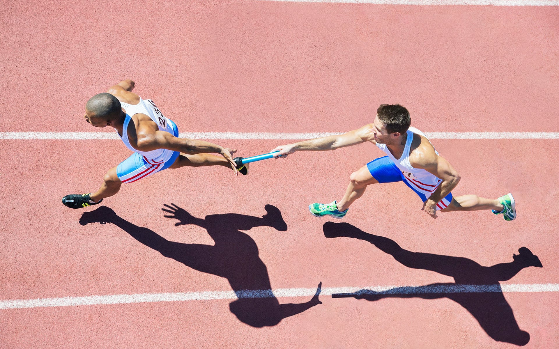 Relay runners passing batons on track | Live Blog