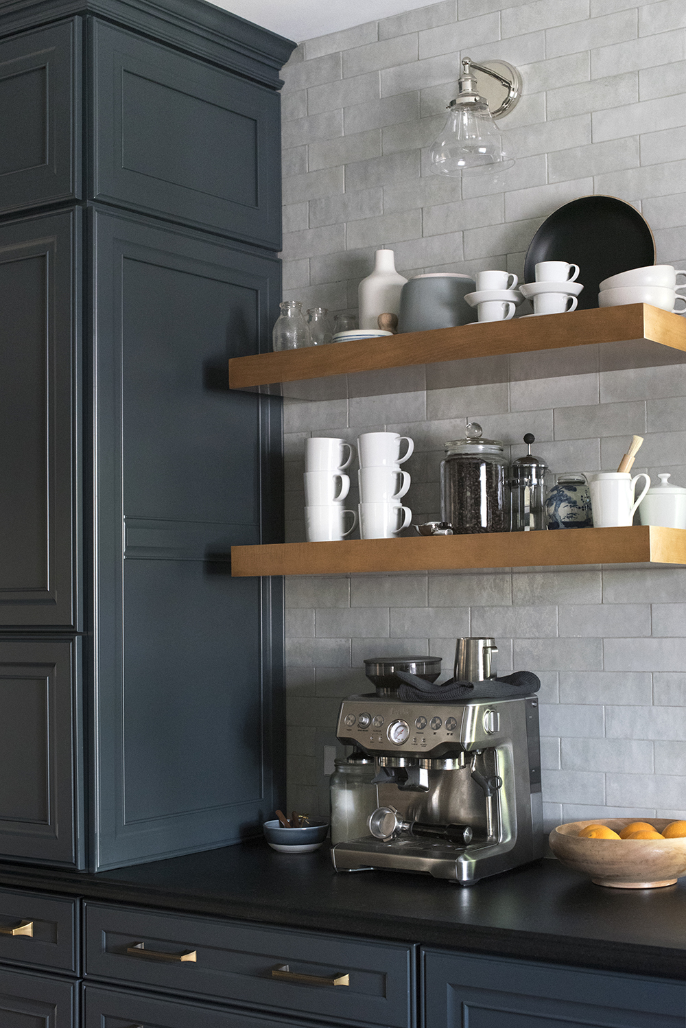 Floating Shelves at Coffee Bar in Kitch…